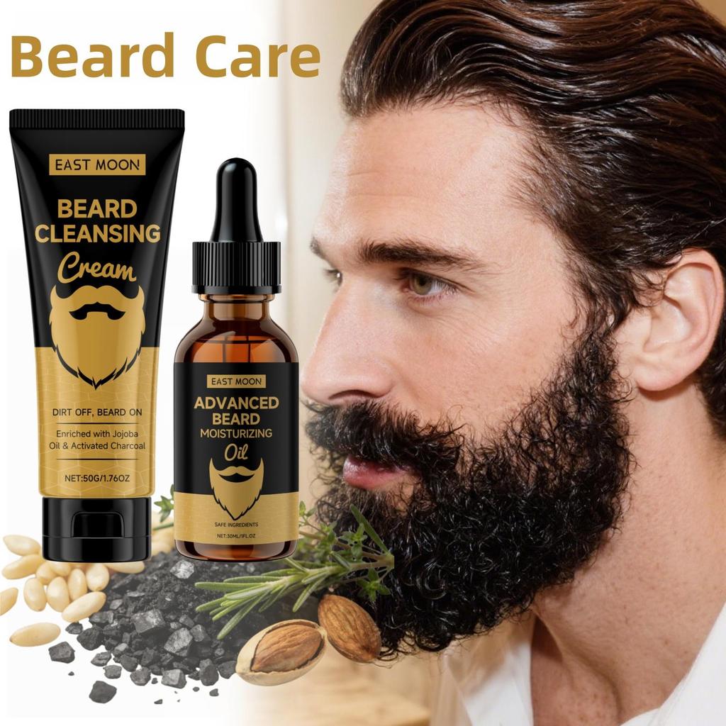 Beard Wash & Care Set: Beard cleansing cream + beard care oil. Provides cleansing and care, long-lasting moisture, prevents dryness and frizz.