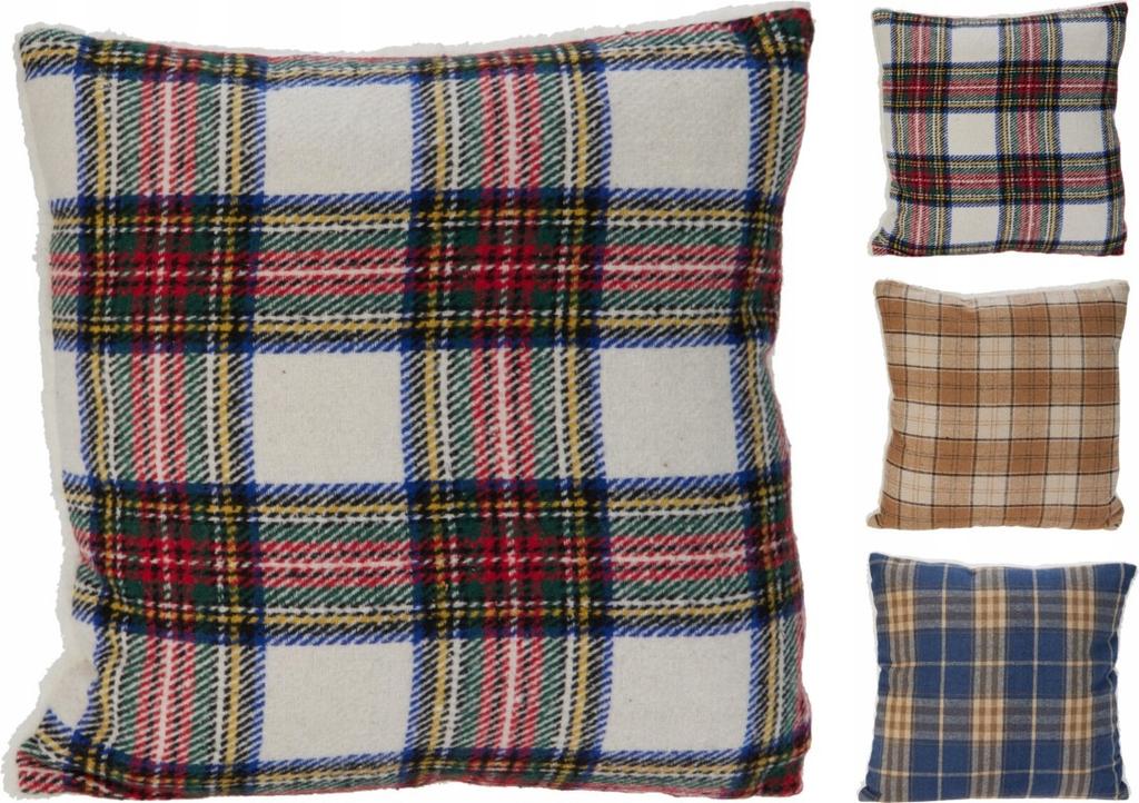 Poduszka dekoracyjna w kratę 45x45cm z miękkim tyłem sherpa 3 kolory 1 szt.