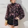 Весна 2026 Элегантная французская блузка с драпирующимся воротником и цветочным принтом из крепа