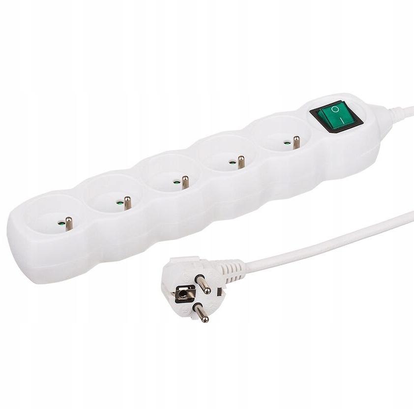 Przedłużacz z wyłącznikiem Biała listwa zasilająca 5 gniazd 3m — купить товар онлайн с бесплатной доставкой по всему миру!