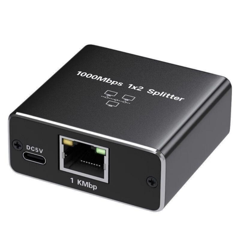 1 to 2 RJ45 Ethernet Splitter Converter with USB Power Cord for Gigabit Networking Expansion Multiple Device Connection