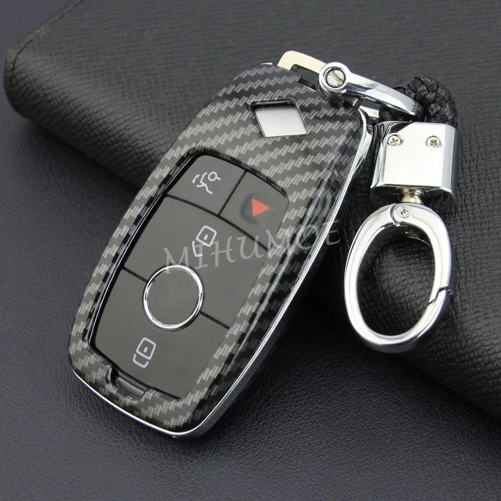 Carbon Fiber Car Key Case Cover Chain for Mercedes-Benz A B C E S G CLS GLB GLC GLE CLA W177 W247 W213 W205 W222 X253 X247 V167