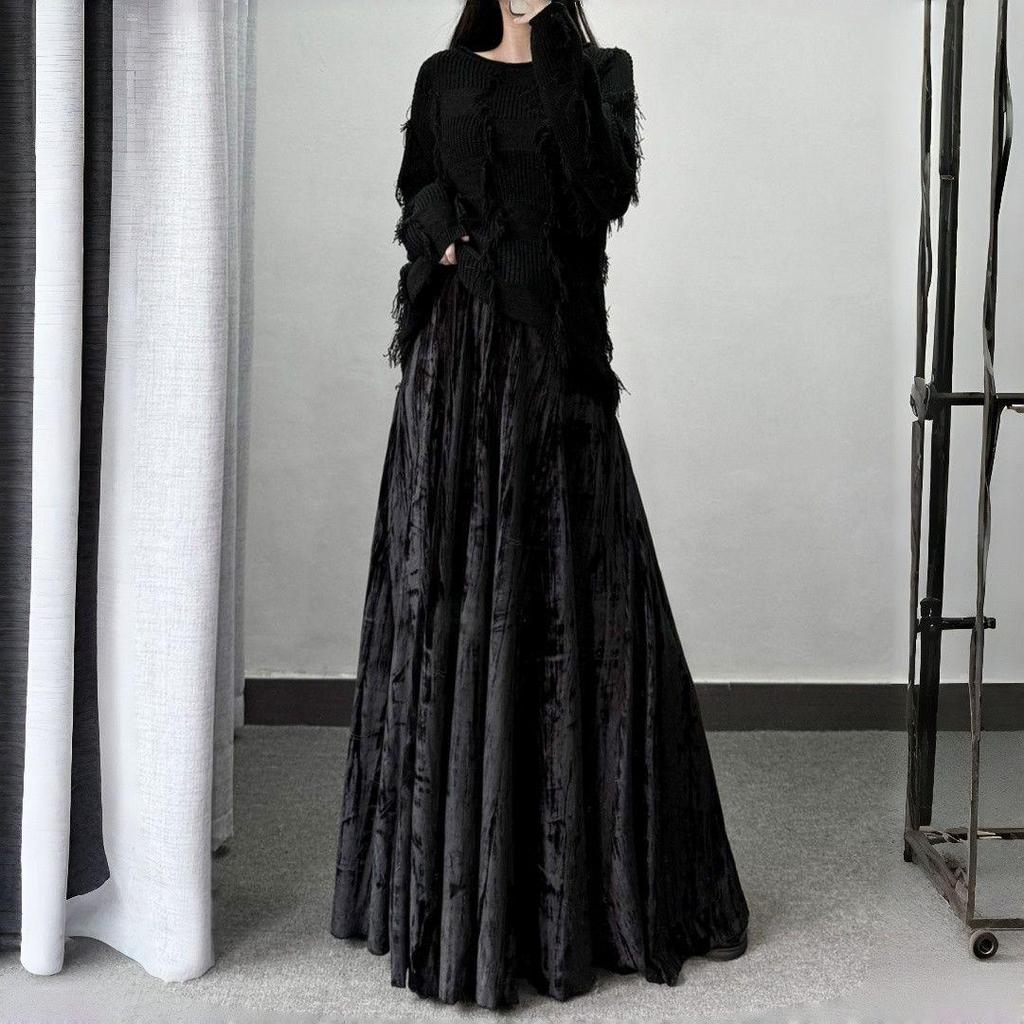 Окунитесь в элегантность и тепло осени и зимы с этой прекрасно сшитой юбкой до щиколотки. Эта юбка с высокой талией, выполненная в китайском стиле, полностью изготовлена из роскошного бархата, что обеспечивает как мягкость на ощупь, так и нотку изысканности.. Несмотря на элегантный внешний вид, юбка сохраняет спортивный стиль, предлагая идеальное сочетание комфорта и шика.. Идеально подходящая как для повседневных, так и для официальных выходов, эта бархатная юбка станет вневременным дополнением к любому гардеробу, легко сочетая в себе изящество и современность.
