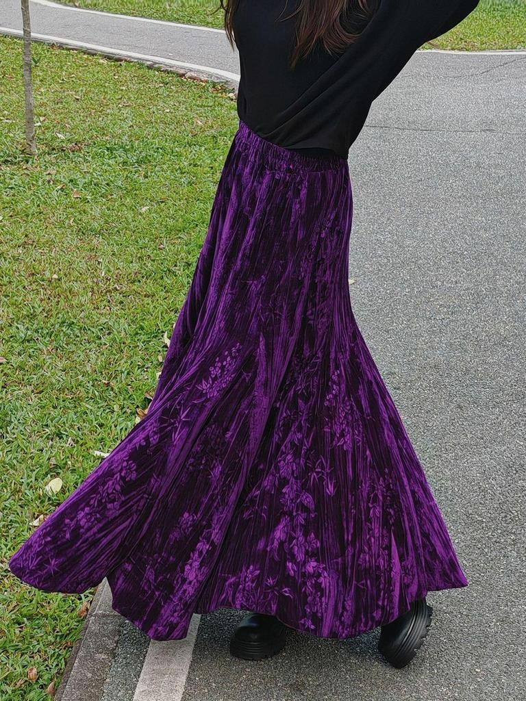 Элегантная темно-фиолетовая бархатная юбка-русалка с высокой талией - Стройнящий осенне-зимний стиль с широким подолом — купить товар онлайн с бесплатной доставкой по всему миру!