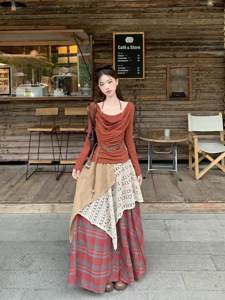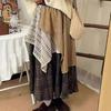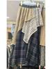 Ретро японская этническая узкая длинная юбка с высокой талией для женщин - Осенне-зимний пэчворк