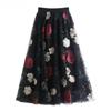 Женская французская ретро сетчатая юбка А-силуэта с цветочной вышивкой для весны/лета