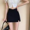 Женская юбка-шорты большого размера, пышная, черная, с высокой талией, А-силуэта, с мини-разрезом
