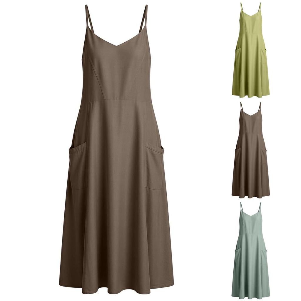 Ladies' Color Casual Fashion Strap Pocket Dress — купить товар онлайн с бесплатной доставкой по всему миру!