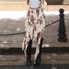 Европейский стиль 2024 года, макси-юбка с цветочным принтом, асимметричная, с двухслойными оборками