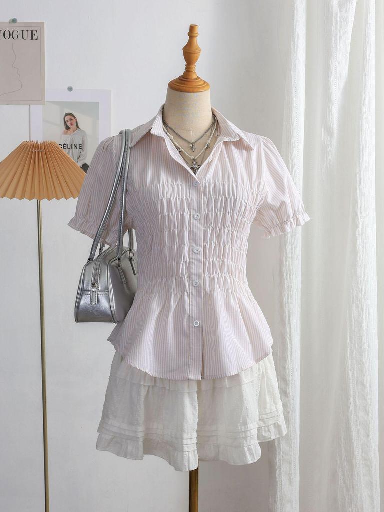 Летняя ретро рубашка в клетку Color Block с лацканами 2025 - Приталенная, с коротким рукавом