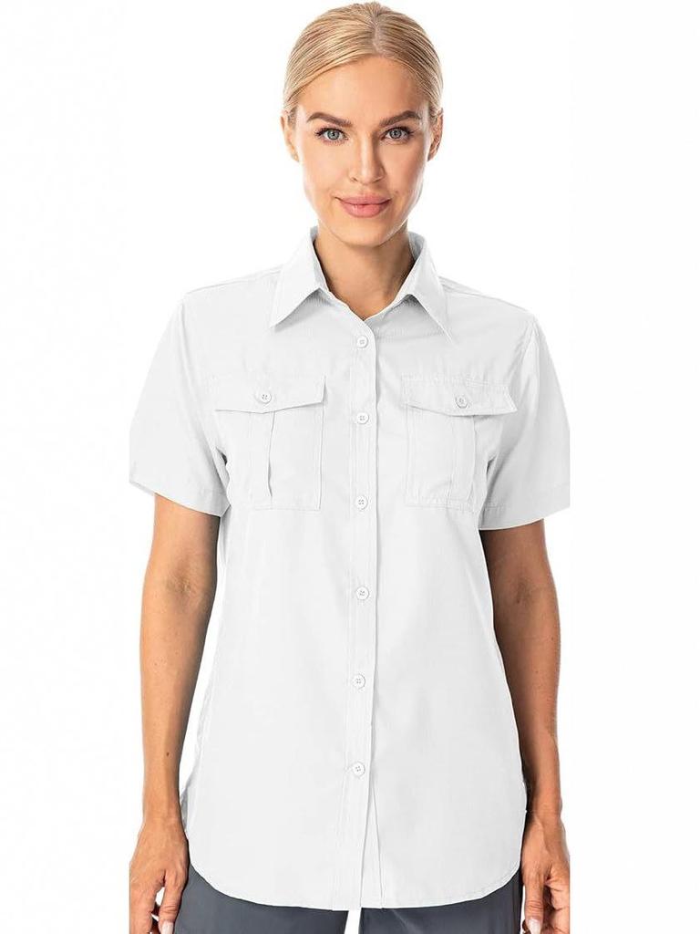 Женская летняя рубашка 2026 с коротким рукавом, быстросохнущая - Однотонная, с нагрудным карманом, дышащая, повседневная, для активного отдыха, европейский и американский стиль