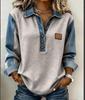 Новая европейская женская рубашка с лацканами и длинным рукавом, вязаная: Универсальный Повседневный Пэчворк Деним Осень/Зима