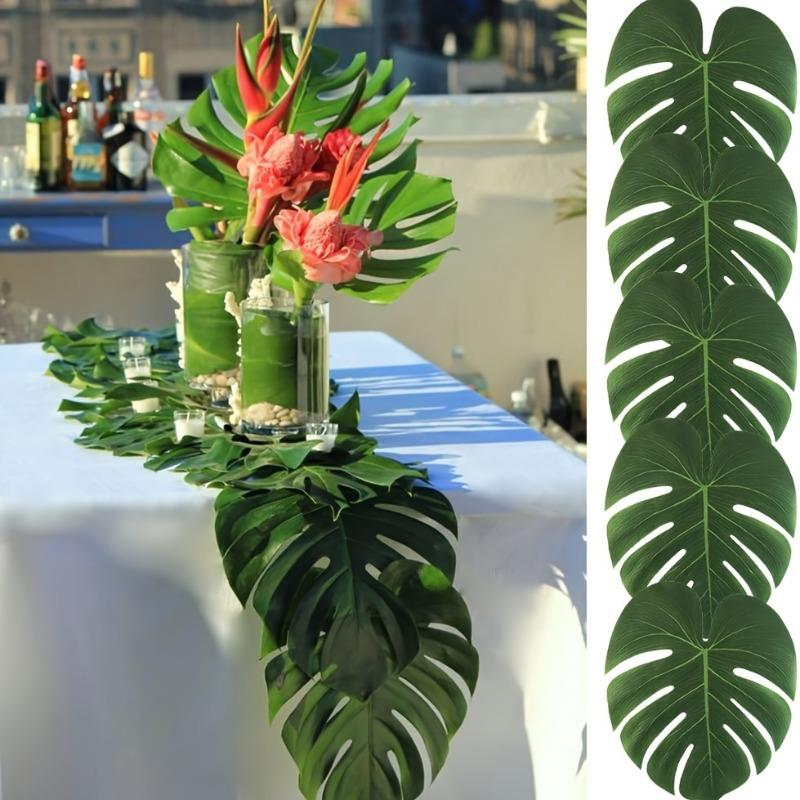 12/20pcs Large Artificial Tropical Palm Leaves, Faux Safari Leaves Monstera Fake Leaves, Party Jungle Beach Theme Decorations