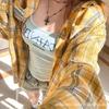 Women's Yellow Plaid Retro Shirt Jacket - Loose Fit, Versatile for Spring & Autumn