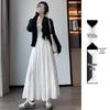 White A-line High Waist Pleated Long Skirt for Women - Spring/Summer 2026 Slimming Petite Layered Umbrella Design