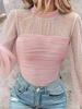 Топ с длинным рукавом, комбинированный с жемчужной сеткой, Весна/Осень 2026 — купить товар онлайн с бесплатной доставкой по всему миру!