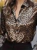 Женская весенняя 2026 года европейская и американская шелковая приталенная рубашка с длинным рукавом и леопардовым принтом