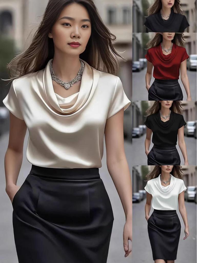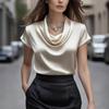 Модная женская атласная рубашка с драпировкой, французский стиль, короткий рукав, 2025