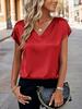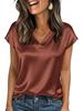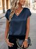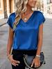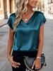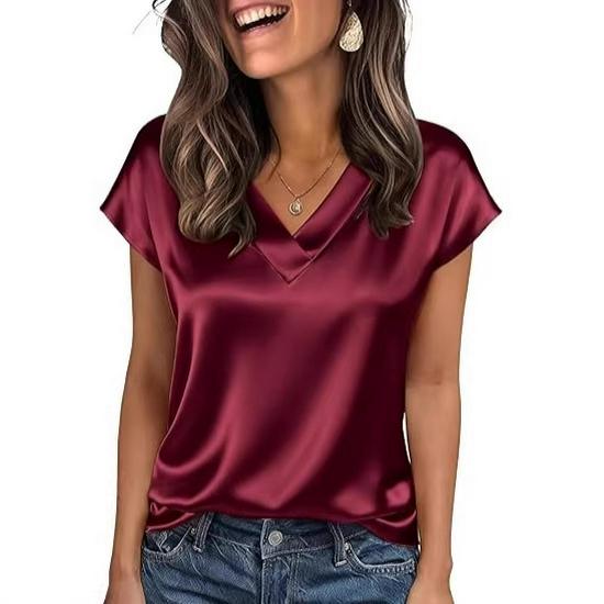 Женская атласная футболка с V-образным вырезом - Европейская и американская, однотонная, повседневная, деловая, ретро, пуловер