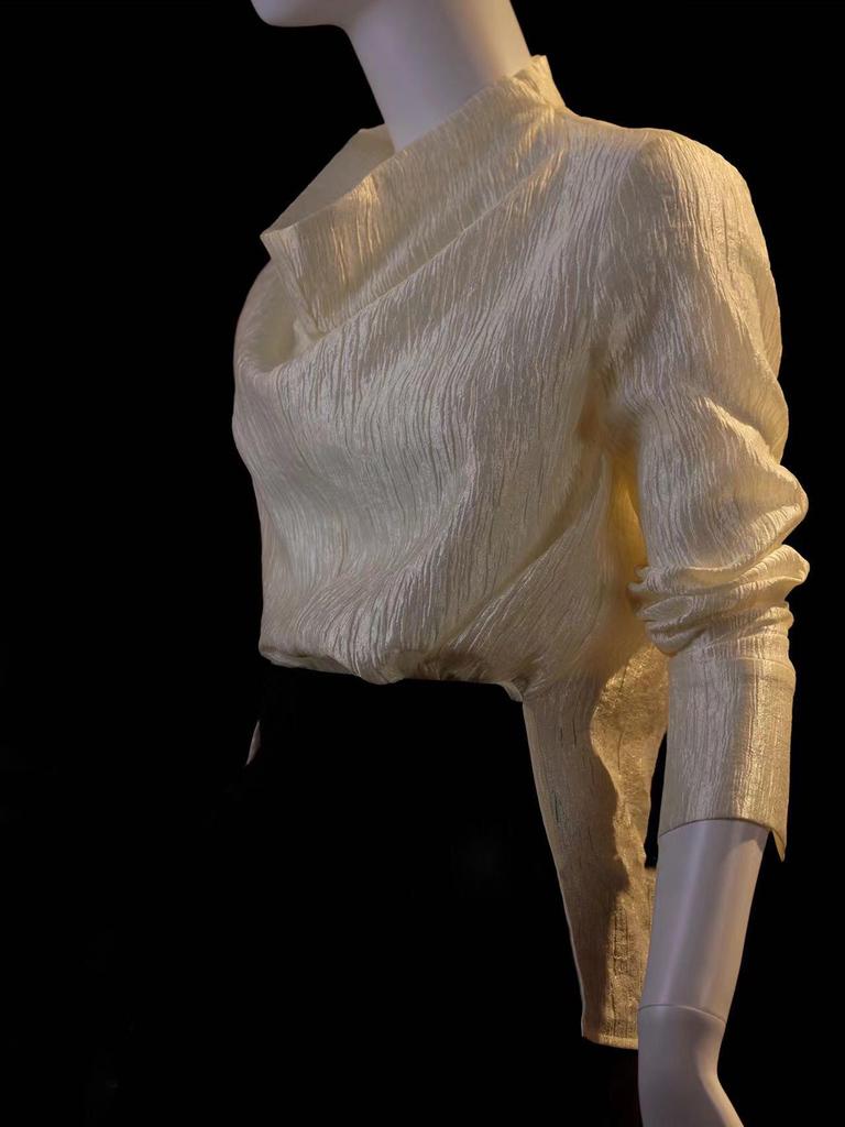 2026 Ранняя весна Нишевый дизайнерский струящийся золотой элегантный топ