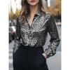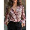 Женская элегантная блузка с леопардовым и цветочным принтом, с длинным рукавом