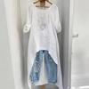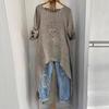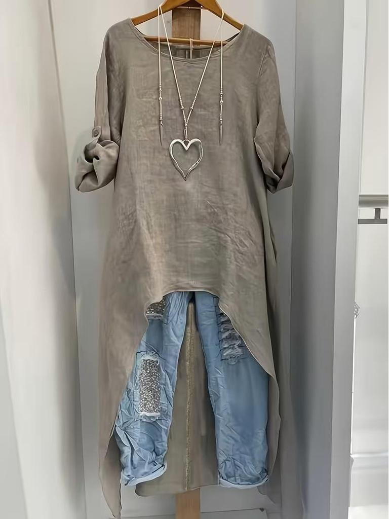 Обновите свой гардероб этим женским длинным топом из льна с асимметричным кроем, изготовленным из высококачественного льняного материала для дышащей и стильной носки.. Эта универсальная модная рубашка имеет однотонный узор, что придает ей вневременную привлекательность любому образу.. Свободного кроя для комфорта, он отличается асимметричным подолом и длинными рукавами, что делает его идеальным для многослойности или как самостоятельный элемент.. Круглый вырез добавляет нотку элегантности, благодаря чему этот топ подходит как для повседневных, так и для изысканных образов.. Идеально подходит для любого сезона, это изделие легко сочетает в себе комфорт и шикарный стиль.