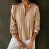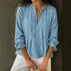 Женская хлопково-льняная рубашка в полоску с V-образным вырезом и длинным рукавом, весна/лето 2025