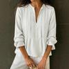 Женская хлопково-льняная рубашка в полоску с V-образным вырезом и длинным рукавом, весна/лето 2025 — купить товар онлайн с бесплатной доставкой по всему миру!