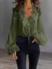 Женская рубашка с кружевной аппликацией, пэчворком, пышными рукавами и плиссировкой, 2026 г., европейская и американская