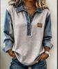 Женская вязаная рубашка с лацканами и длинным рукавом в европейском стиле 2025 года - Универсальная повседневная рубашка с пэчворком из денима для осени/зимы