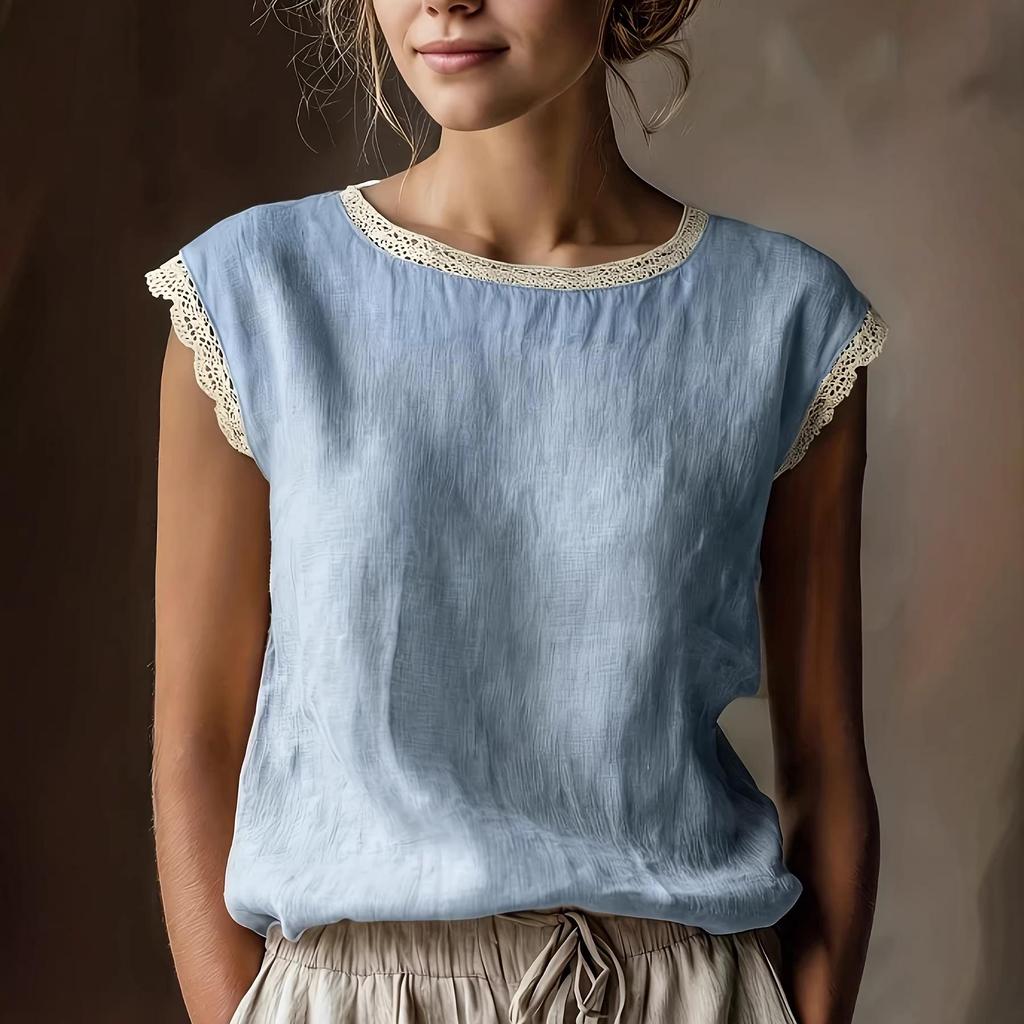 Женская ретро свободная льняная рубашка без рукавов с кружевной аппликацией 2026