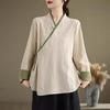 Хлопково-льняная рубашка в стиле Дзен для полных: Ретро в китайском стиле с косым воротником и завязками
