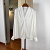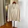 Женская элегантная шелковая рубашка-свитер с V-образным вырезом, длинный рукав, свободный крой, стройнящая, шелк-тусса, идеально подходит для весенне-летнего офиса.