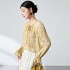 100% Mulberry Silk High-End Shirt, Spring Lantern Sleeves, Double Georgette Tie-Up Print, Women's Top