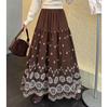 Женская юбка А-силуэта с этнической вышивкой Fei Yuan: Осенне-зимняя мода с полым дизайном