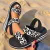 Сандалии Женские платформа крутые шлепанцы Римский стиль мода летний сезон имитация пеньковой веревки черно-белый фон леопардовый принт