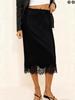 Элегантная женская юбка из атласа и шелка с кружевной аппликацией