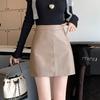 Women's Black High-Waisted PU Leather A-Line Mini Skirt - Slimming and Anti-Exposure, Perfect for Spring and Autumn.
