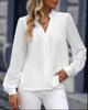 Эта элегантная рубашка с длинным рукавом изготовлена из высококачественного полиэстера, обеспечивая мягкость и легкость.. Эта рубашка с шикарным V-образным вырезом выполнена в изысканном однотонном цвете, что делает ее универсальным дополнением к вашему гардеробу.. Пэчворк из шифона добавляет нотку женственности и стиля, идеально подходит для любого случая в европейский весенне-летний сезон.. В сочетании с брюками по фигуре для создания профессионального образа или с джинсами для непринужденной прогулки, эта рубашка обеспечивает и комфорт, и стиль.