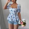 Элегантная летняя приталенная рубашка с квадратным вырезом и пышными рукавами — купить товар онлайн с бесплатной доставкой по всему миру!