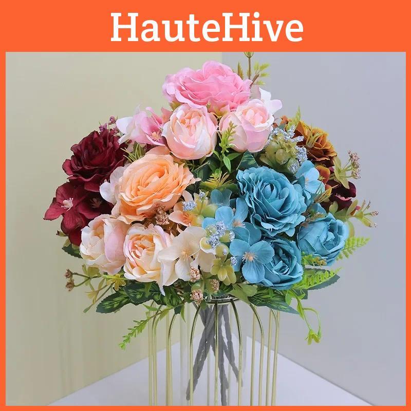 Винтажный европейский букет из искусственных цветов с шелковыми розами и гортензией макрофиллой для свадебного декора и домашнего стайлинга — купить товар онлайн с бесплатной доставкой до всему миру!