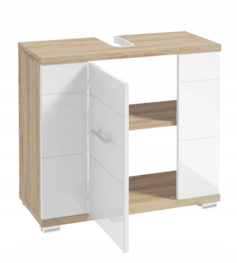 Washbasin cabinet with siphon cutout 70x625x315cm Sonoma Oak White Rita — купить товар онлайн с бесплатной доставкой по всему миру!