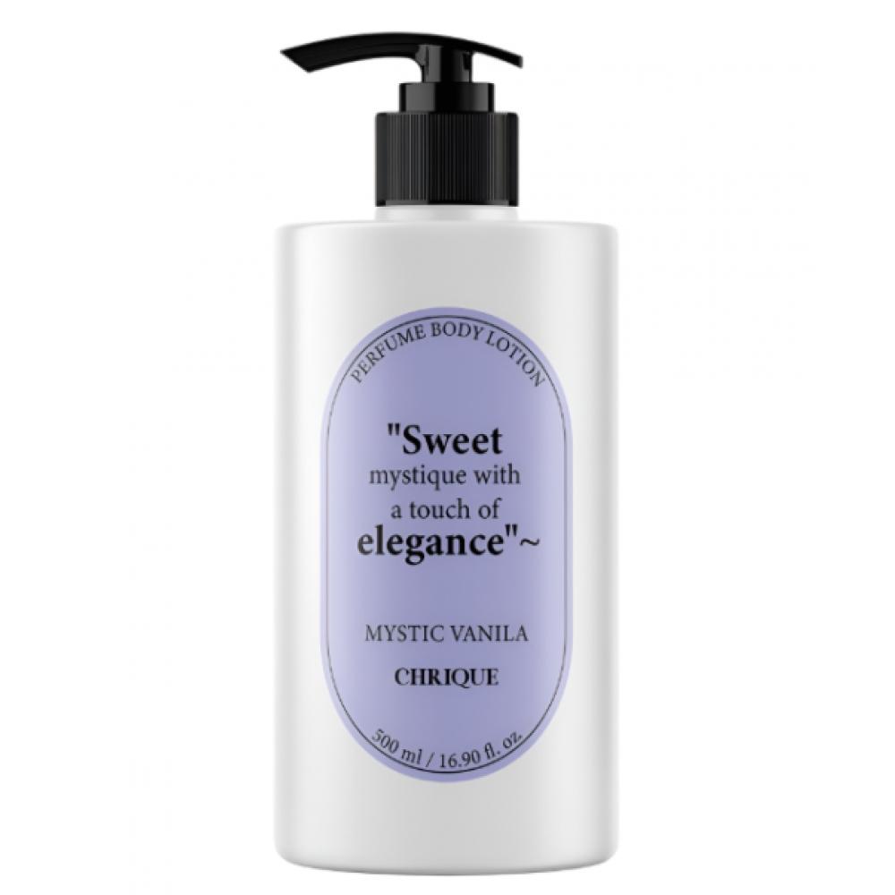 CHRIQUE Mystic Vanilla Perfume Body Lotion 500ML is designed to be used as a perfume alternative, featuring notes of mystic vanilla combined with orange floral and woody musk. This product deeply moisturizes the skin, and its subtle fragrance lingers, allowing it to be used like a perfume. With a generous 500ml capacity, it belongs to the body care category of body lotion.
