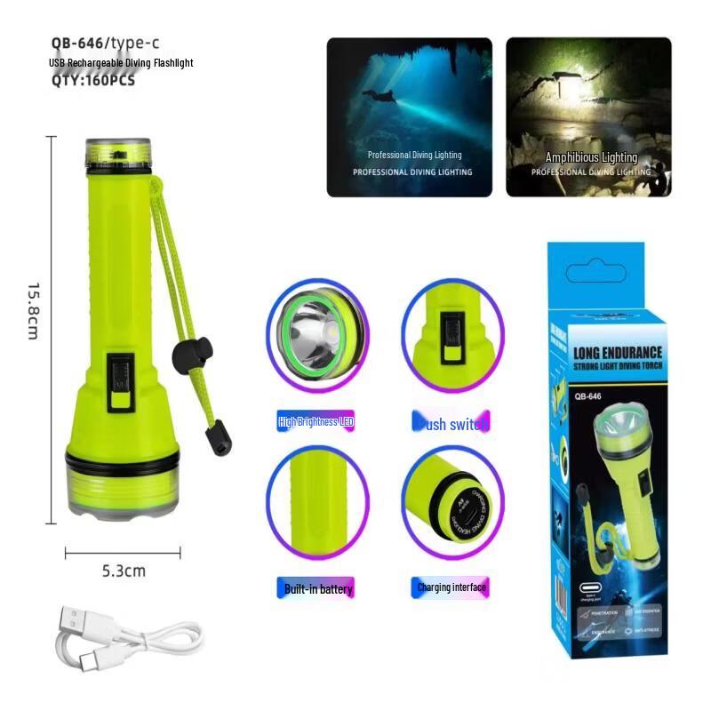 QB646 Rechargeable IPX8 Diving Flashlight