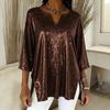 2025 Блестящий свободный топ с V-образным вырезом, длинным рукавом и разрезом для женщин