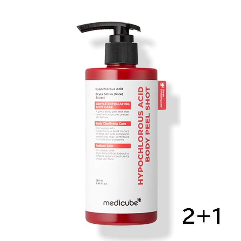 Откройте для себя более гладкую и чистую кожу тела с помощью пилинг-шота для тела с гипохлористой кислотой от MEDICUBE. Разработанное для бережного отшелушивания скоплений, это интенсивное средство для тела помогает удалить излишки кожного сала и омертвевшие клетки кожи, одновременно успокаивая проблемные участки.. Сформулировано с использованием хлорноватистой кислоты и успокаивающих ингредиентов, оно поддерживает сбалансированную, освеженную поверхность кожи без сильного раздражения.. Набор 2+1 идеально подходит для регулярного ухода с отшелушиванием тела.