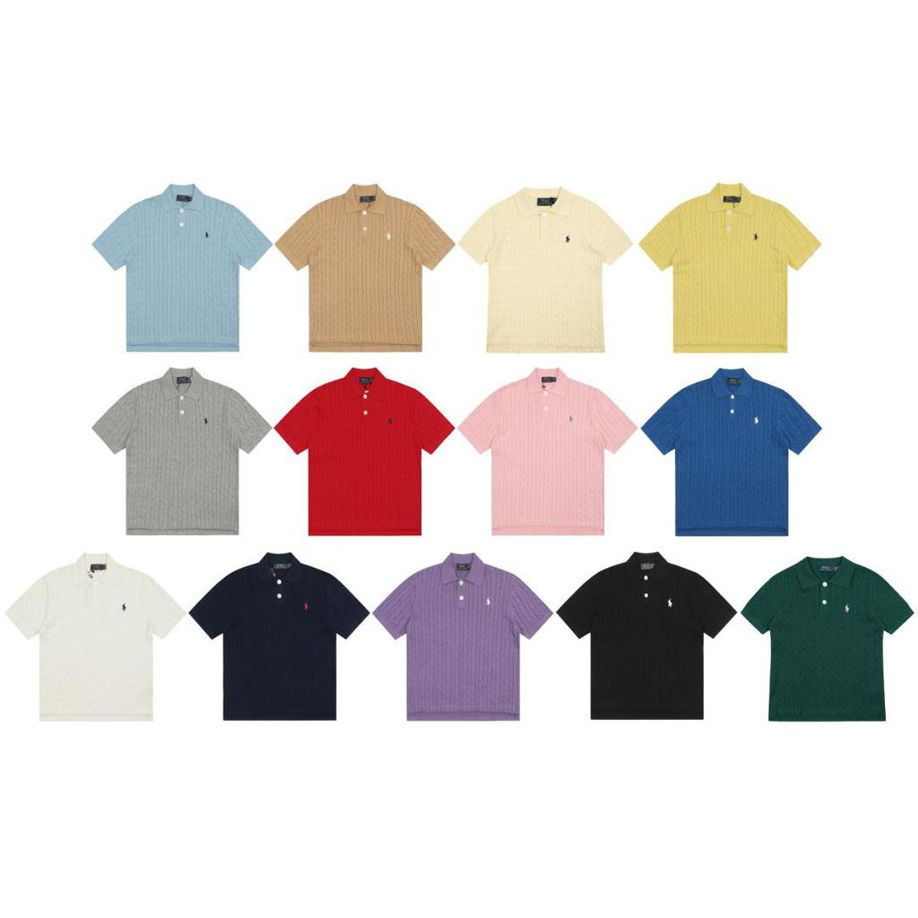 Высококачественный всесезонный классический универсальный вязаный кардиган 25SS с отложным воротником, на двух пуговицах, с вышивкой маленькой лошади, с коротким рукавом