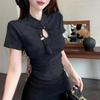 Ощутите слияние традиционной элегантности и современного стиля с этой укороченной футболкой в стиле ципао, идеально подходящей для лета.. Изготовлен из высококачественного полиэстера, обеспечивает комфорт и долговечность.. Дизайн отличается элегантным воротником-стойкой и стандартными плечами, дополненными шикарными короткими рукавами.. Высокая талия создает flattering силуэт, и модель доступна в больших размерах, чтобы подчеркнуть разнообразие типов фигур.. Окунитесь в новый пикантный китайский стиль и создайте смелый модный образ этим летом.