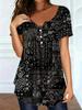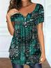 Элегантный топ большого размера с V-образным вырезом и узором пейсли для женщин - Весна/Лето