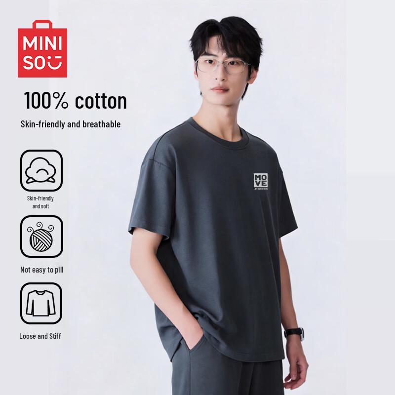MINISO Мужская хлопковая футболка с коротким рукавом в американском стиле